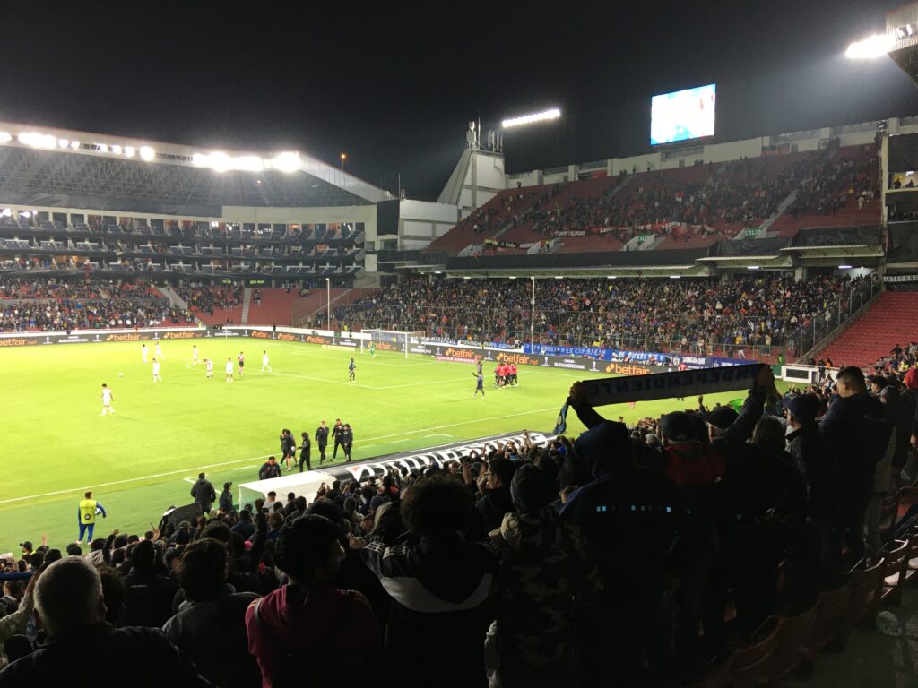 Nach knapp 35-minütiger Fahrt wurde der Ground 45 Minuten vor Anpfiff erreicht. Ein ziemlich neues Stadion, im welchen erst seit September 2021 gespielt wird. Ich kann somit stolz behaupten, vermutlich als erster Deutscher diesen Ground betreten zu haben, nur ein Franzose scheint – wenn man die Futbology App als Informant nimmt – vor mir da gewesen zu sein. Der Ground an sich war halt ein typischer Neubau, der auch in Tschechien hätte stehen können. Die Flutlichter haben mich an Regensburg (oder war es doch Ingolstadt?) erinnert. Wenn ich daran denke, dass in 30 bis 40 Jahren nur noch so hässliche Teile in Südamerika rumstehen würden, wäre die Faszination schon deutlich geringer. Das Publikum war sehr familiärer, ne kleine Szene, die die ganze Zeit Stimmung machte, gab es trotzdem. Eine klare Steigerung zum gestrigen Spiel. Das Spiel war qualitativ her auch eines der besten Spiele der Reise. Schöne Szenen aber viele Spielunterbrechungen durch den VAR. Elfer, Rote Karten, es war alles dabei. Catolica, die sich eher im unteren Bereich der Tabelle befanden, holt sich den unerwarteten Auswärtssieg mit 1:2, was viele inkognito angereiste Fans zum Jubeln brachte. Warum es hier keinen offiziellen Gästeblock gab bzw. warum es anscheinend ein Gäste-verbot gab, ist für mich immer noch unverständlich. Bei der Rückreise kam ich noch mal kurz ins Schwitzen, weil kein Uber Fahrer gefunden wurde und es so langsam dämmerte. Doch zum Glück fand sich nach circa 20 Minuten ein Fahrer, der mich zurück zum Hostel brachte, so dass ich pünktlich zum Abendessen zufrieden zurück war.