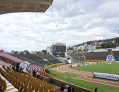 . Nach einer Stadtführung ging es mit dem Bus (kostet hier nur 30 Cent pro Fahrt) zum Stadion. Das Stadion ist sehr geil, ein altes Olympiastadion mit ca. 35.000 Plätzen, welches schon bessere Zeiten gesehen hatte. Tickets konnte man vor dem Haupteingang für 5$ kaufen. Endlich mal ein Land, welches noch echte Tickets und nicht nur digitale verkauft. Beim Einlass durfte ich dann bei einer alten Frau meinen Gürtel abgeben, den ich nach Abpfiff für 1$ wiederbekam. Bei der Kartenkontrolle wollte der Kontrolleur meine Karte wegwerfen (hat er sonst mit allen gemacht) und sah mich dem-entsprechend entgeistert an, als ich ihm die Karte aus der Hand nahm. Behalten durfte ich sie dann aber. Mir war schon vor dem Spiel klar, das heute nicht viele Zuschauer zu erwarten waren. In Ecuador ziehen nur die beiden großen Vereine Barcelona und LDU Quito wirklich Zuschauer an, es gibt zwar auch noch ein paar kleinere Vereine mit einer treuen Fanbase,