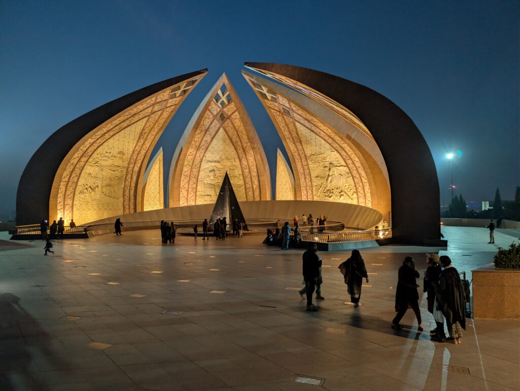 Ebenfalls schön in der Abenddämmerung und nicht weit entfernt ist das Pakistan Monument. Es ist ein blütenformiges Nationaldenkmal, dass die Einheit der Gesellschaft Pakistans symbolisch mit vier ,,Blättern“ der Provinzen darstellt. Diese Blätter sind innen mit weiteren u.a. Städten beschriftet und abends beleuchtet, sodass eine ganz süße Stimmung entsteht. Das letzte Highlight, die große Moschee ist ebenfalls nicht weit entfernt, dazu aber am letzten Tag mehr. Übrigens einen anderen westlichen Touristen hatten wir doch noch getroffen, einen akzentfreien Deutsch-Brasilianer aus dem viral gegangenen ,,Social-Media“ Dorf Blumenau, in Brasilien, witzig.