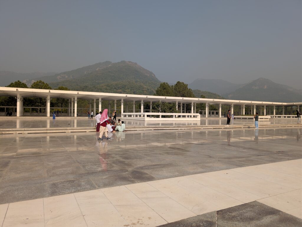 Am letzten Tag – gleichzeitig am Abend der Abreisetag – wurde noch die bekannteste Sehenswürdigkeit der Stadt besichtigt. Die Faisal-Moschee wurde in gemeinsamer Freundschaft zwischen Saudi-Arabien und Pakistan erbaut, so trägt sie auch den Namen des damaligen Königs Faisal bin Abd al-Aziz. Das Design gilt als einzigartig, ist für mich jedoch architektonisch kein Schmuckkästchen. Umso überzeugender ist die Aussicht – auf der einen Seite auf die Stadt und auf der anderen Seite auf die Berglandschaft – den Margalla Hügeln. Das Besondere hier ist die Menschlichkeit: Scheinbar wird die Moschee auch von vielen inländischen Touristen besucht und dadurch fallen wir als Westeuropäer stark auf. Etliches Händeschütteln, Selfies und sogar ein ,,Video-Interview“ durfte ich geben und mitteilen und beschreiben wie toll Pakistan/Islamabad ist.