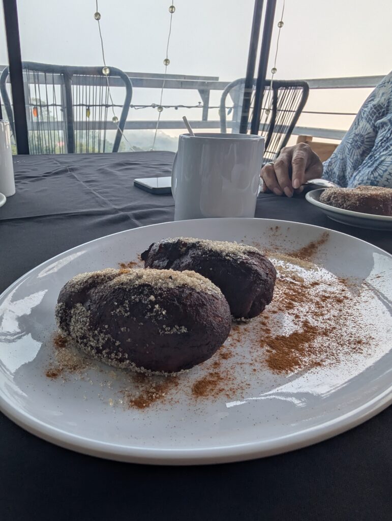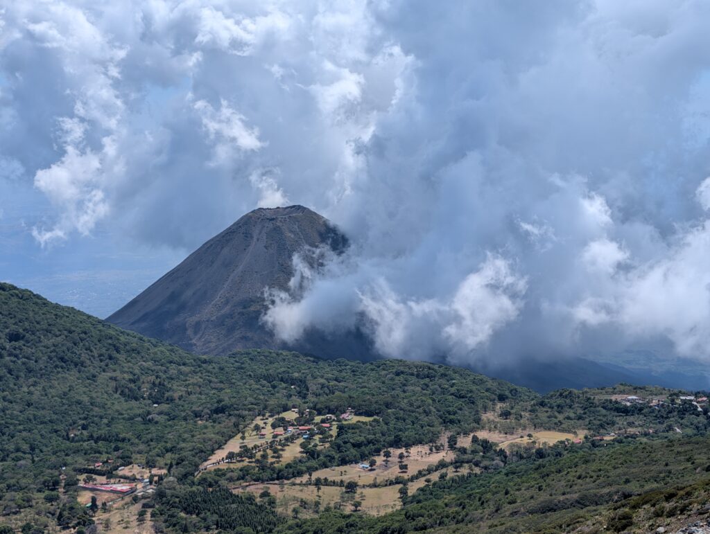 . Am nächsten Tag gab es zuerst das klassische Frühstück (Bild) und dann früh das ,,große Highlight“ des Landes. Es soll eine lokale Verbindung geben, die meisten nutzen jedoch gebuchte und geführte Touren hoch hinaus auf den Vulkan Santa Ana. Das Naturschutzgebiet Cerro Verde (grüner Hügel) befindet sich mit dem Auto etwa eine Stunde südlich von Santa Ana. Der Eintritt liegt (neben Parkgebühren) erst bei 6 und anschließend nochmal bei 3 Dollar für einen Guide. Dieser ist verpflichtend, auch wenn es sein kann, dass dieser irgendwann bei Auf- oder Abstieg verschwindet.