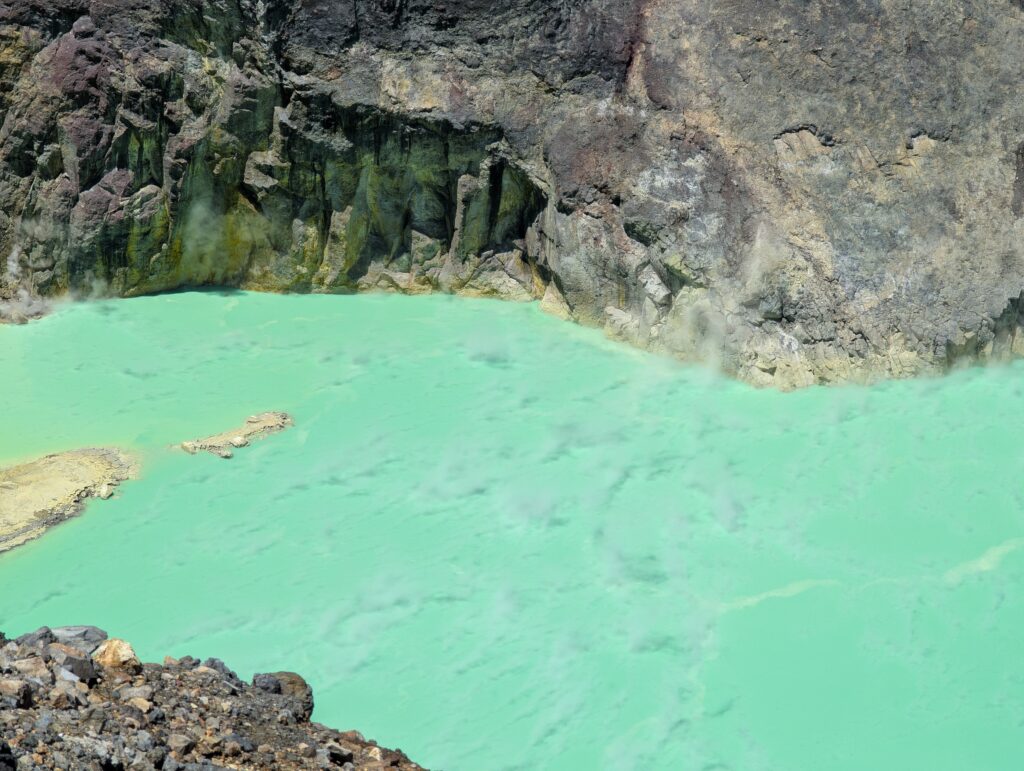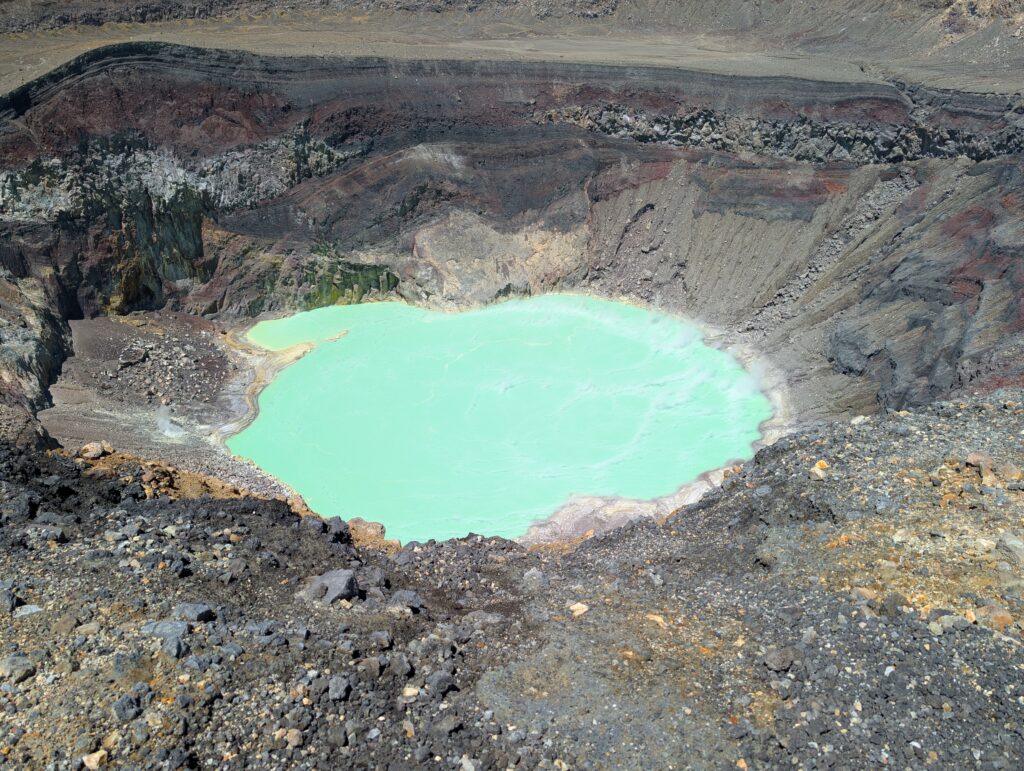 Ebenso ratsam ist es, vor 11 Uhr anzukommen, da danach angeblich keine Guides mehr verfügbar sind. Diese Entscheidungen sind doch etwas willkürlich, der Wanderweg selbst ist eindeutig erkennbar und für trainierte Menschen auch in unter einer Stunde zu bewältigen. In manch langsameren Gruppen kann das Ganze auch bis zu zwei Stunden dauern, vereinzelte steinigere Passagen gibt es zwar, aber das ist eigentlich für jeden machbar. Oben ergibt sich nicht nur der weite Ausblick auf weitere Vulkane und Berge, sondern auch auf den Kratersee – mit seiner grün-türkisfarbenen, knalligen Farbe ein bezauberndes Schauspiel. Wenn die Berghunde